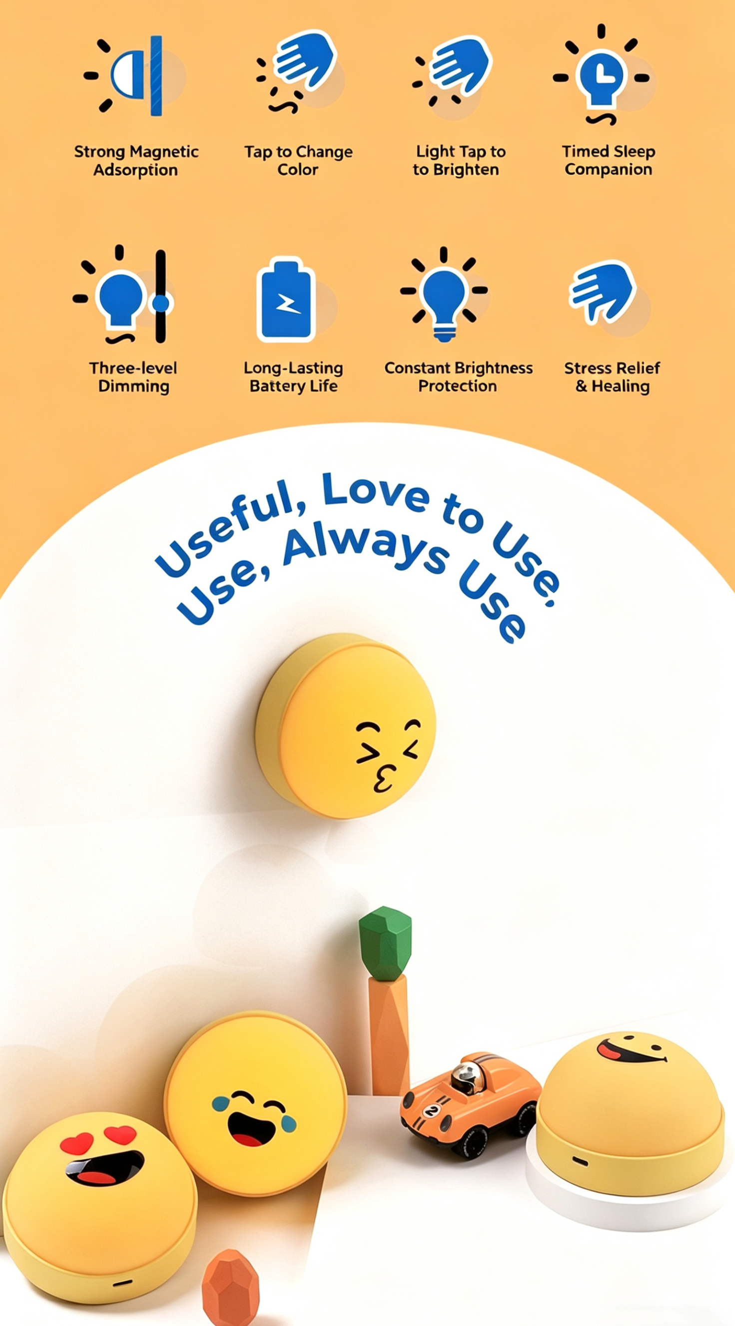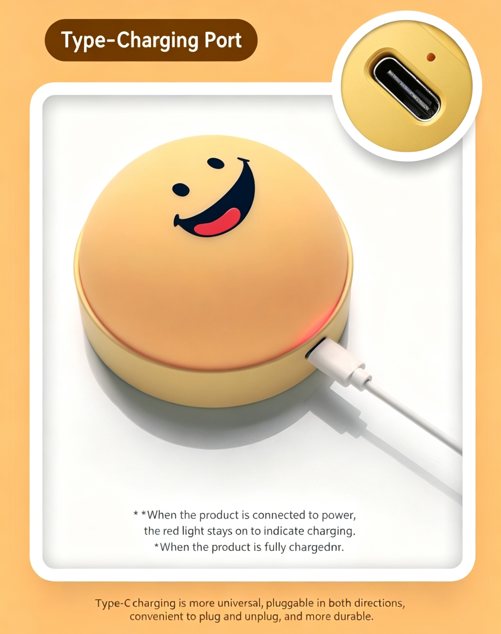 This adorable smiley emoji night light is a fun, creative home essential, perfect for kids' bedrooms, nurseries, and daily use.
