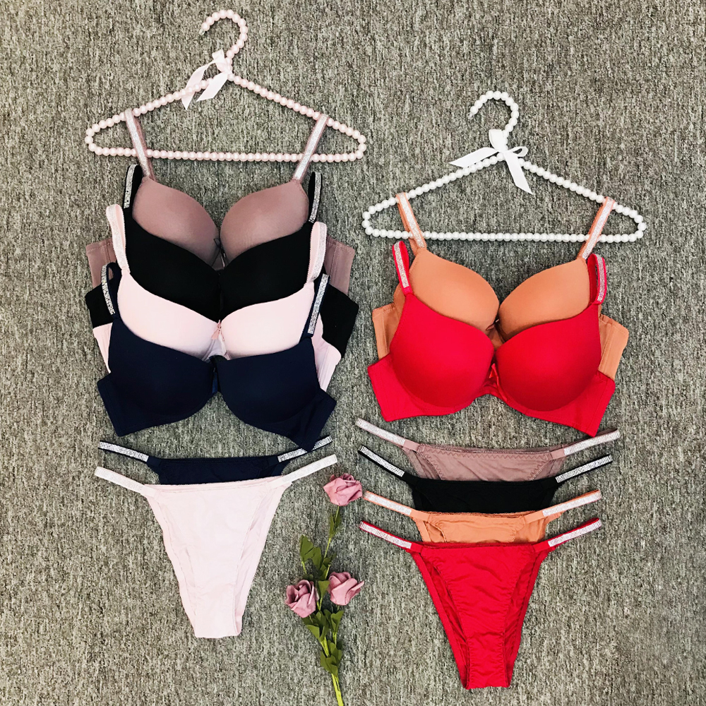 Introducing this Smooth Push-Up Lingerie Set, a perfect blend of elegance and allure. Featuring a push-up bra design for enhanced contour and confidence, paired with matching panties, this set is adorned with delicate rhinestone-embellished straps that add a touch of glamour. Available in a range of colors, from neutral tones like beige, black, pink, and navy to bold hues like red and coral, it caters to diverse style preferences. Crafted with smooth fabric, it ensures both a comfortable fit and a sleek appearance. Whether for everyday wear or special occasions, this lingerie set elevates your intimate collection with its chic details and flattering silhouette.