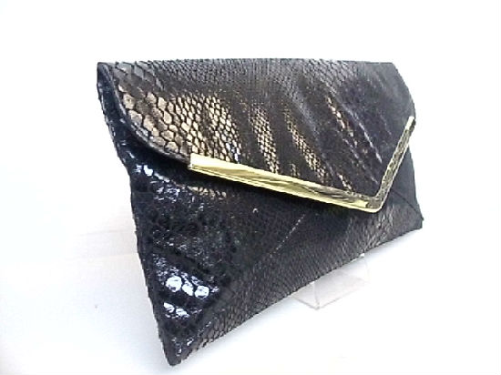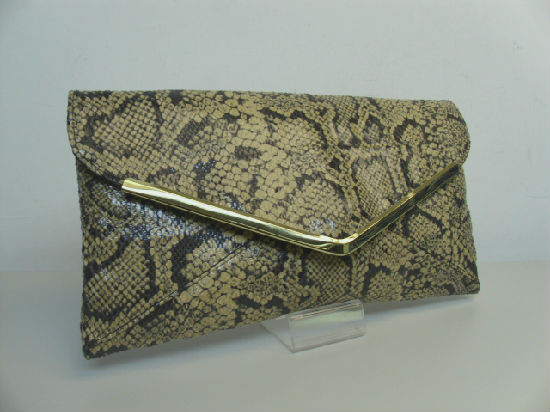 • Snake PVC clutch bag with arrow shaped metal clip.