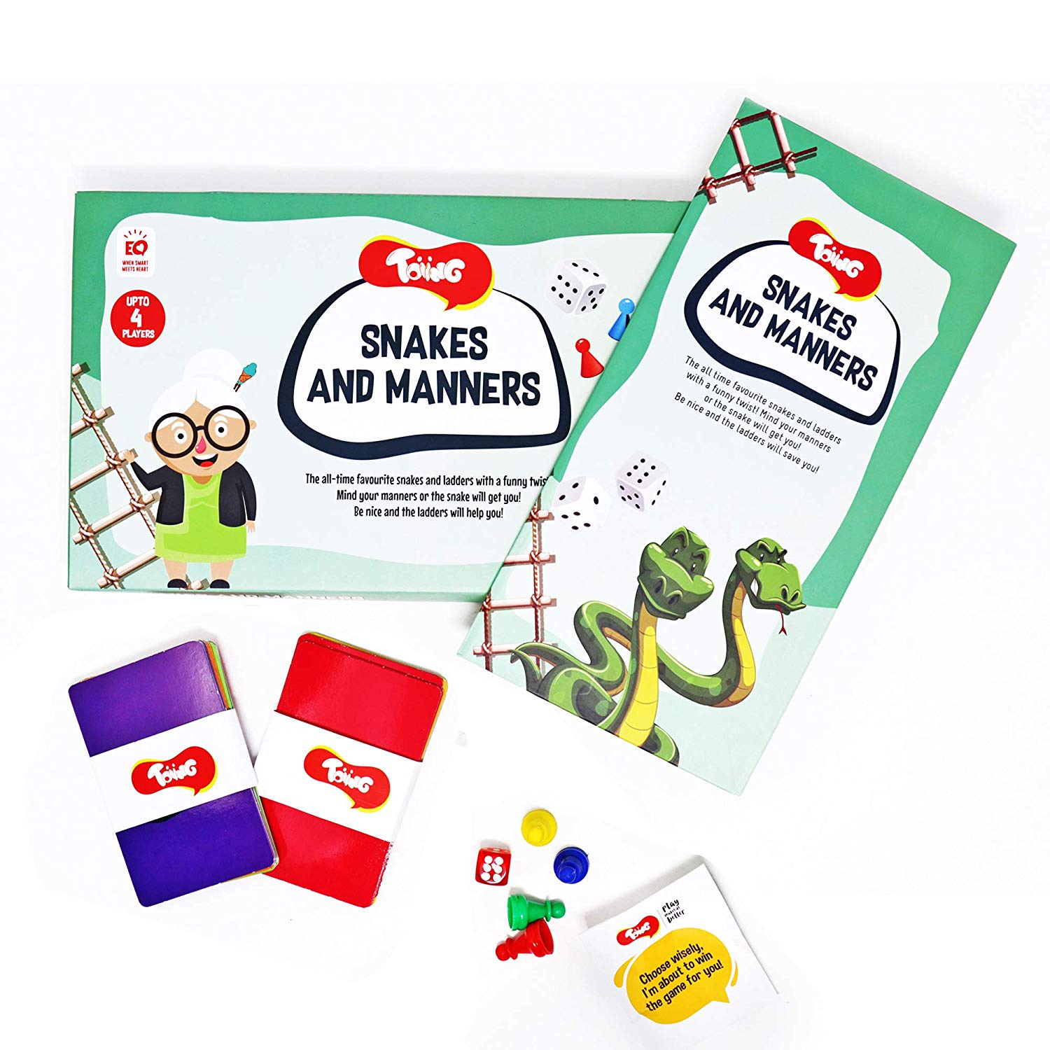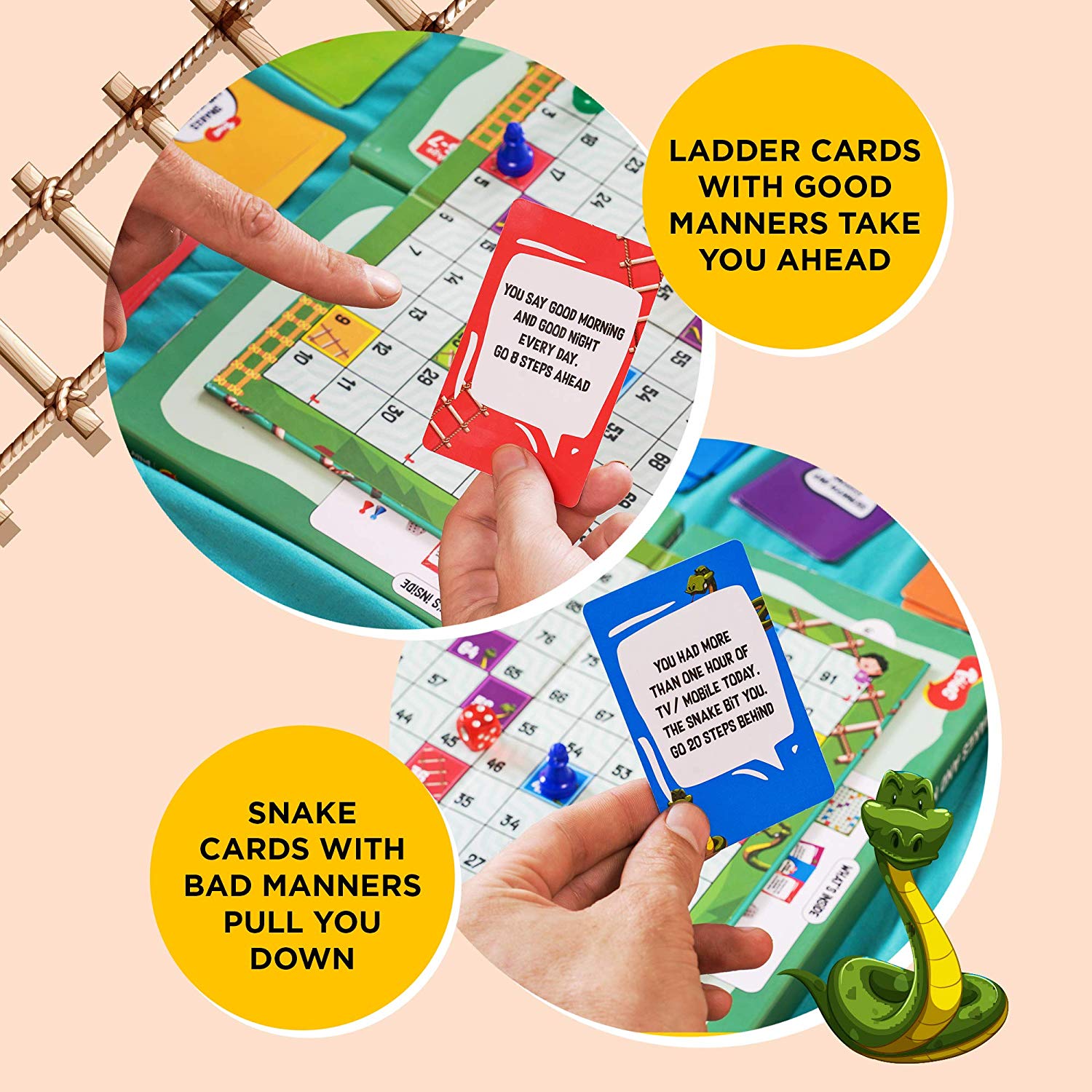 BENEFIT: The game has snakes and ladder tiles, that help kids associate penalties to bad manners and gains to good manners