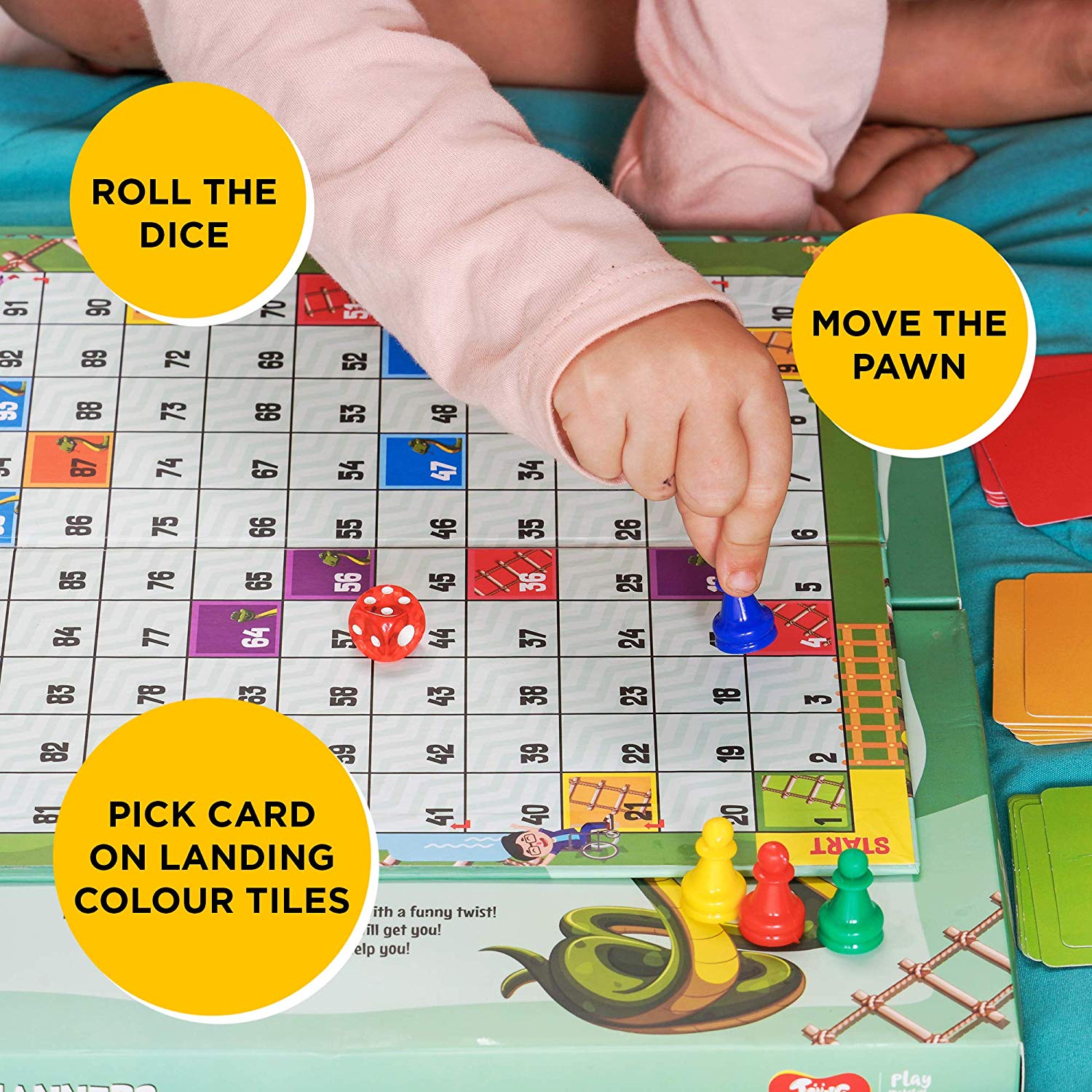 GAME PLAY: Part of Toiing's EQ range of games, Snakes and Manners is played like the traditional Snakes and Ladders board game with a twist!