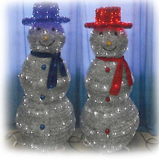 This Christmas tree flaunts an ingenious appearance of a snowman with a hat and a scarf in blue. The silvery snowman tree is adorned with numerous light bulbs for a twinkling effect. The adorable Christmas tree is an indispensable accessory to jazz up your home décor during the Christmas season.
