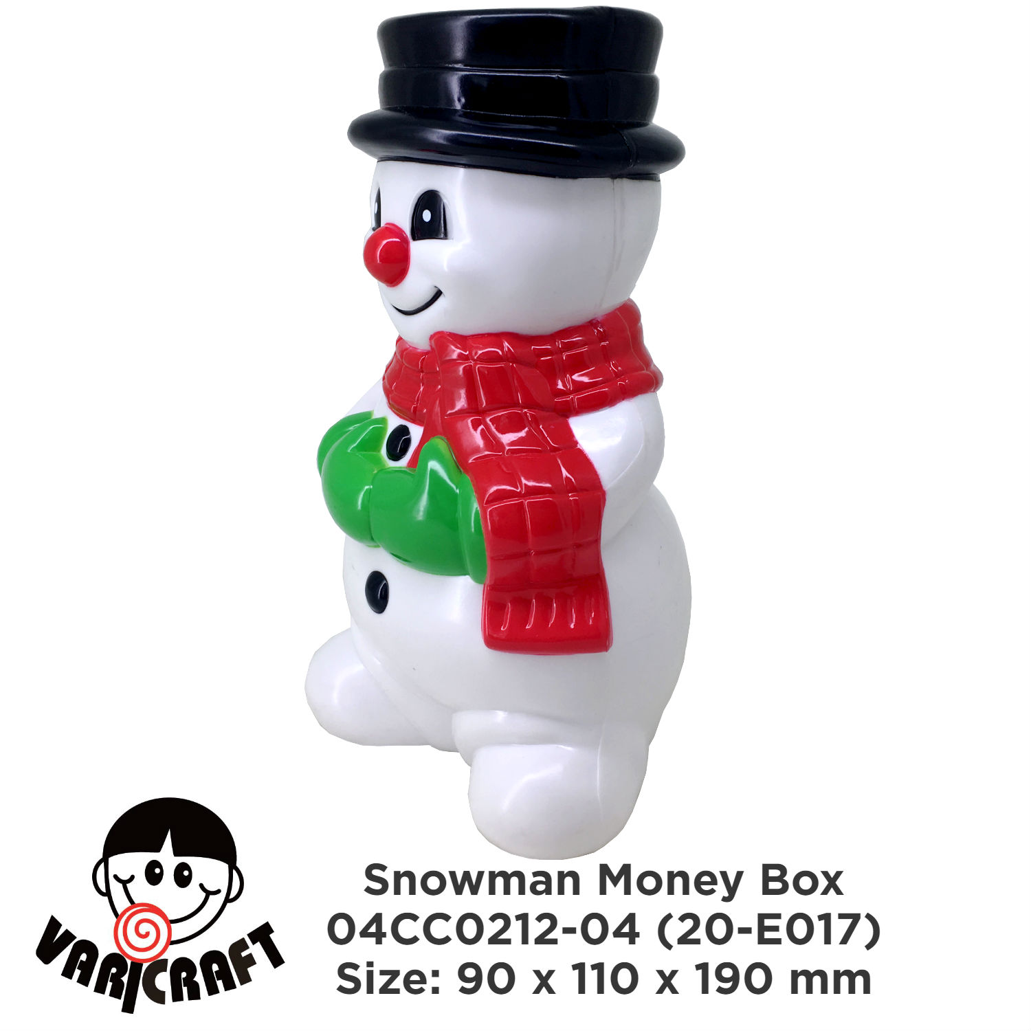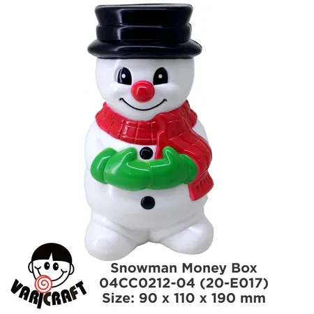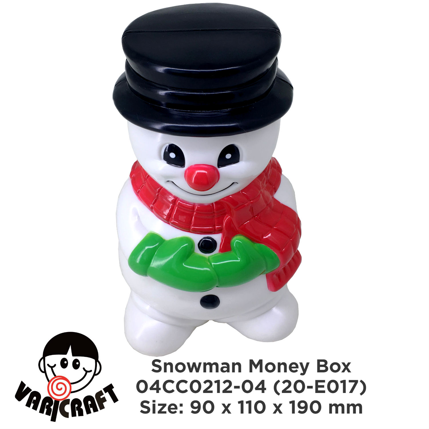 • Features: Snowman shape; snowman shaped; box; container; gift box; candy box; candy container; clear; rigid plastic packaging container; food grade; reusable; recyclable; with coin slot; coin bank; for Christmas