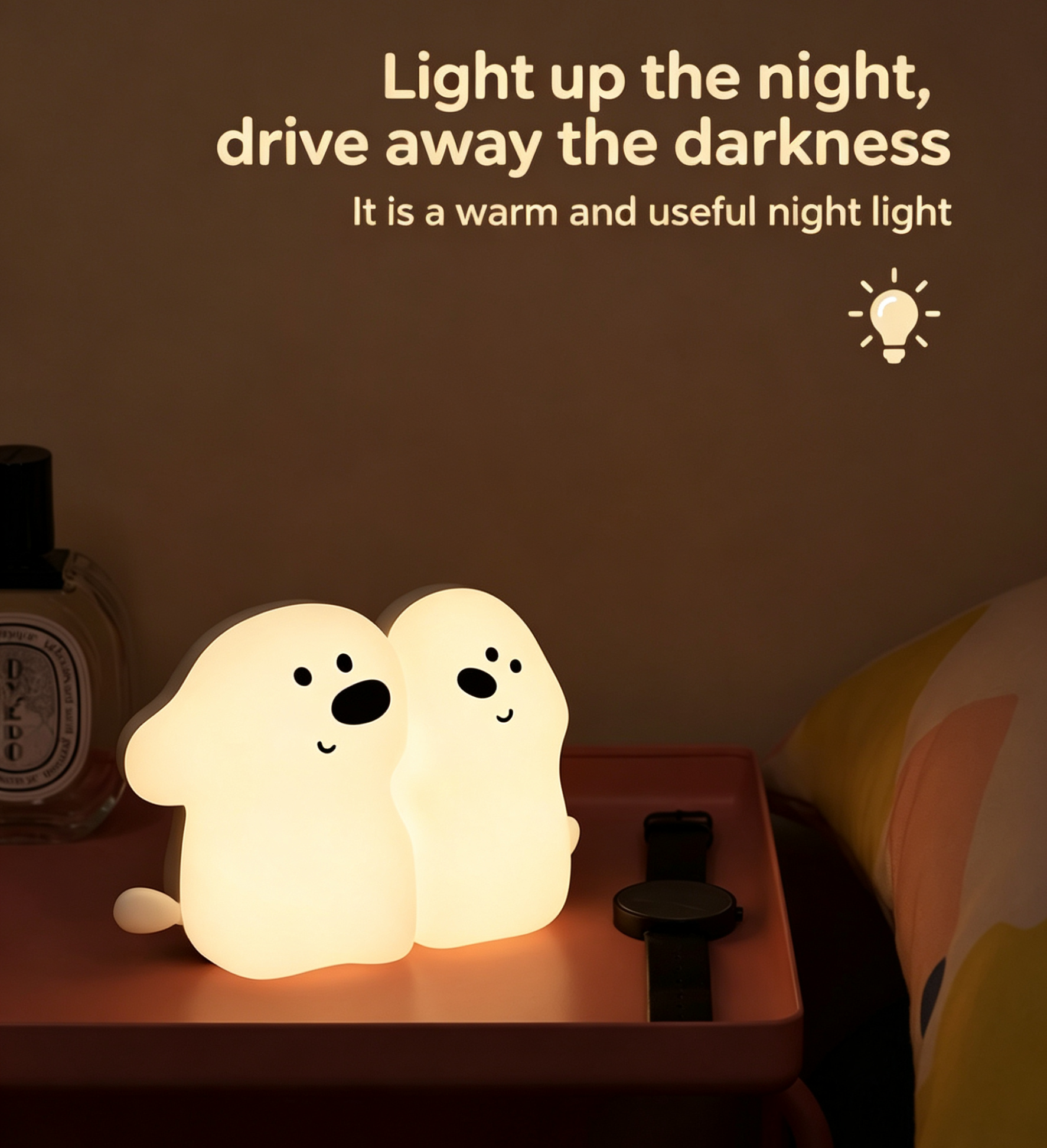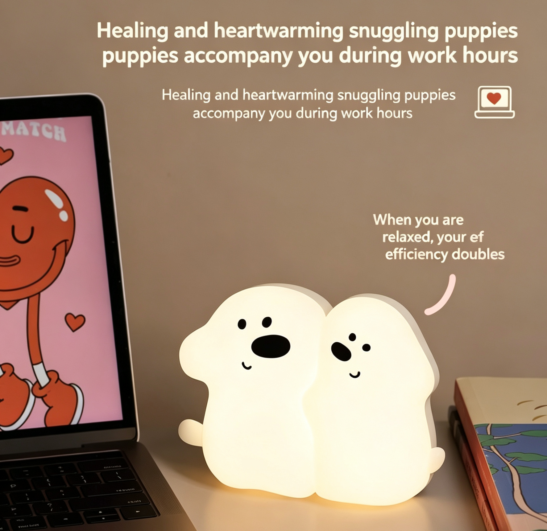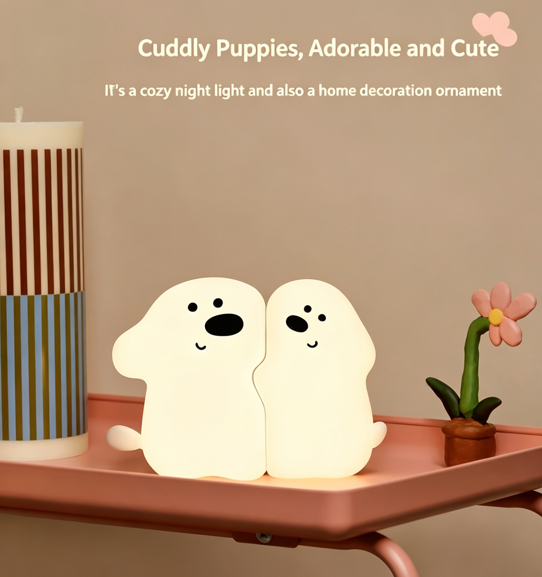 Meet your adorable new bedtime companion – the Snuggle Puppy Night Light! This charming two-in-one puppy lamp is not just a warm, soft night light, but also a sweet home decor piece. With its cute snuggling design, stepless dimming, and easy operation, it’s the perfect romantic gift for couples, girlfriends, and anyone who loves cozy, heartwarming decor.