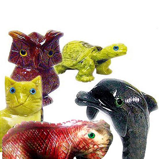 This is a set of stone carving which shows the characteristic of the Peruvian traditional handcrafts. Made of natural stones, it features animals including dolphin, turtle, cat, owl etc. Their colourful nature makes them nice decorations in your house.