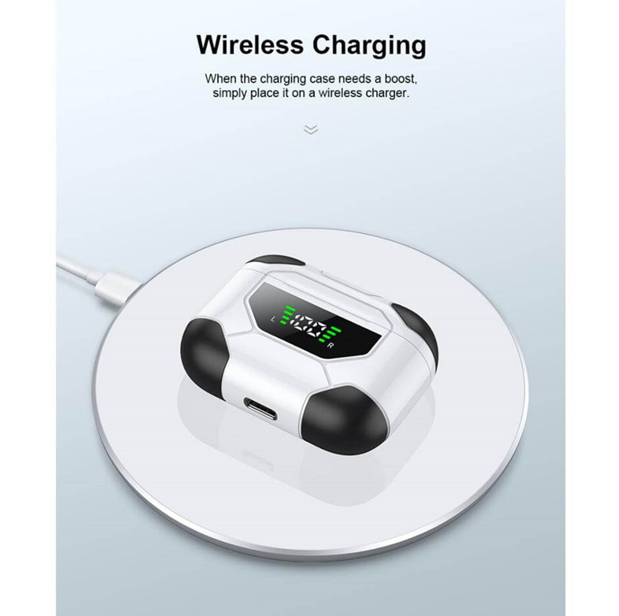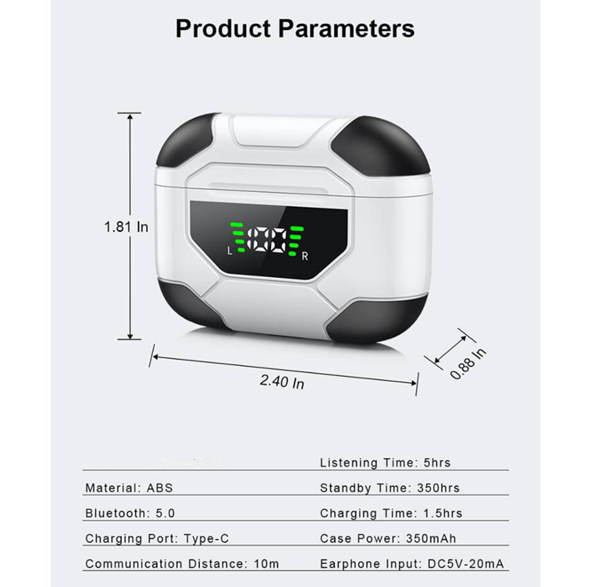Soccer Style Casing TWS Earbuds Bluetooth Earphones Wireless Headphones White