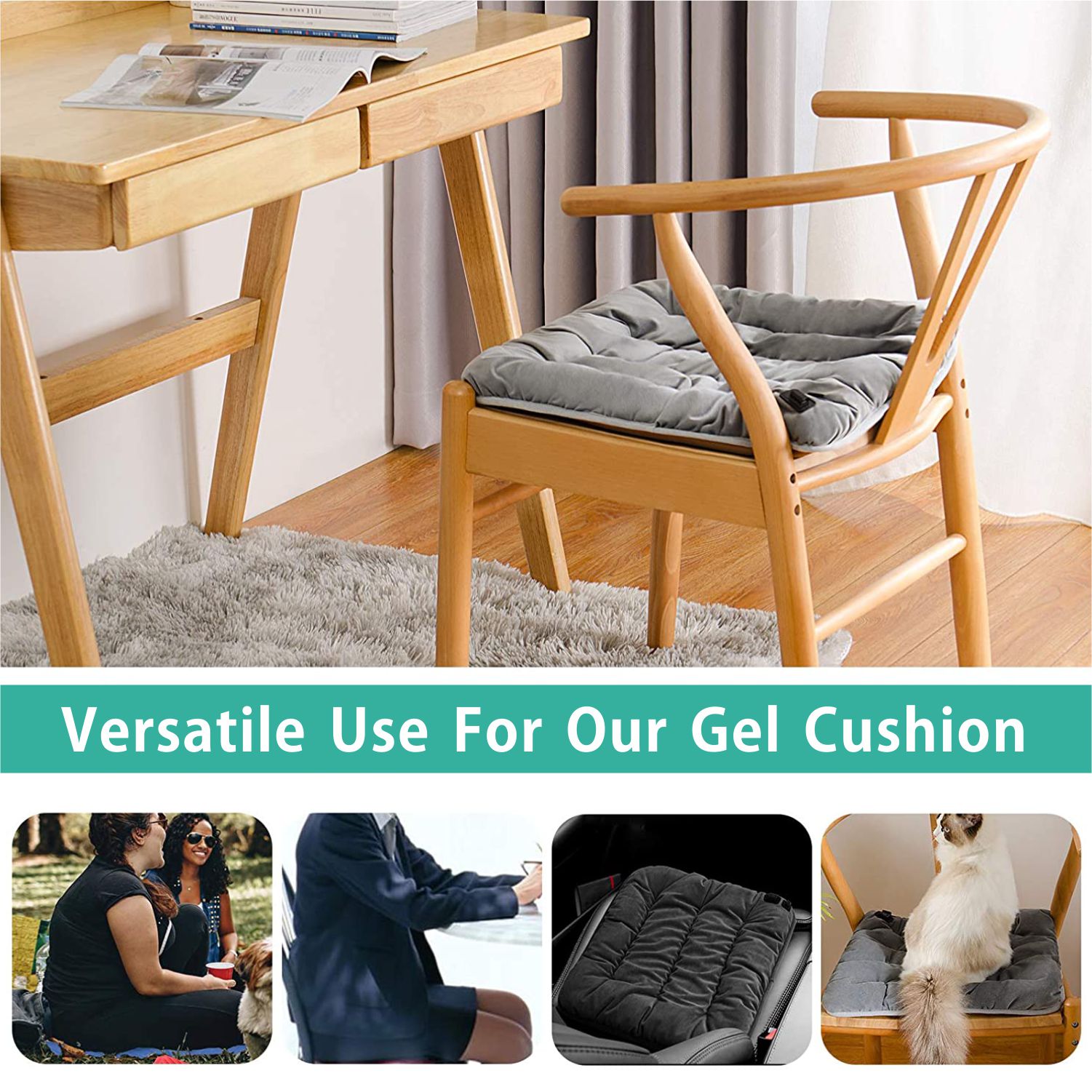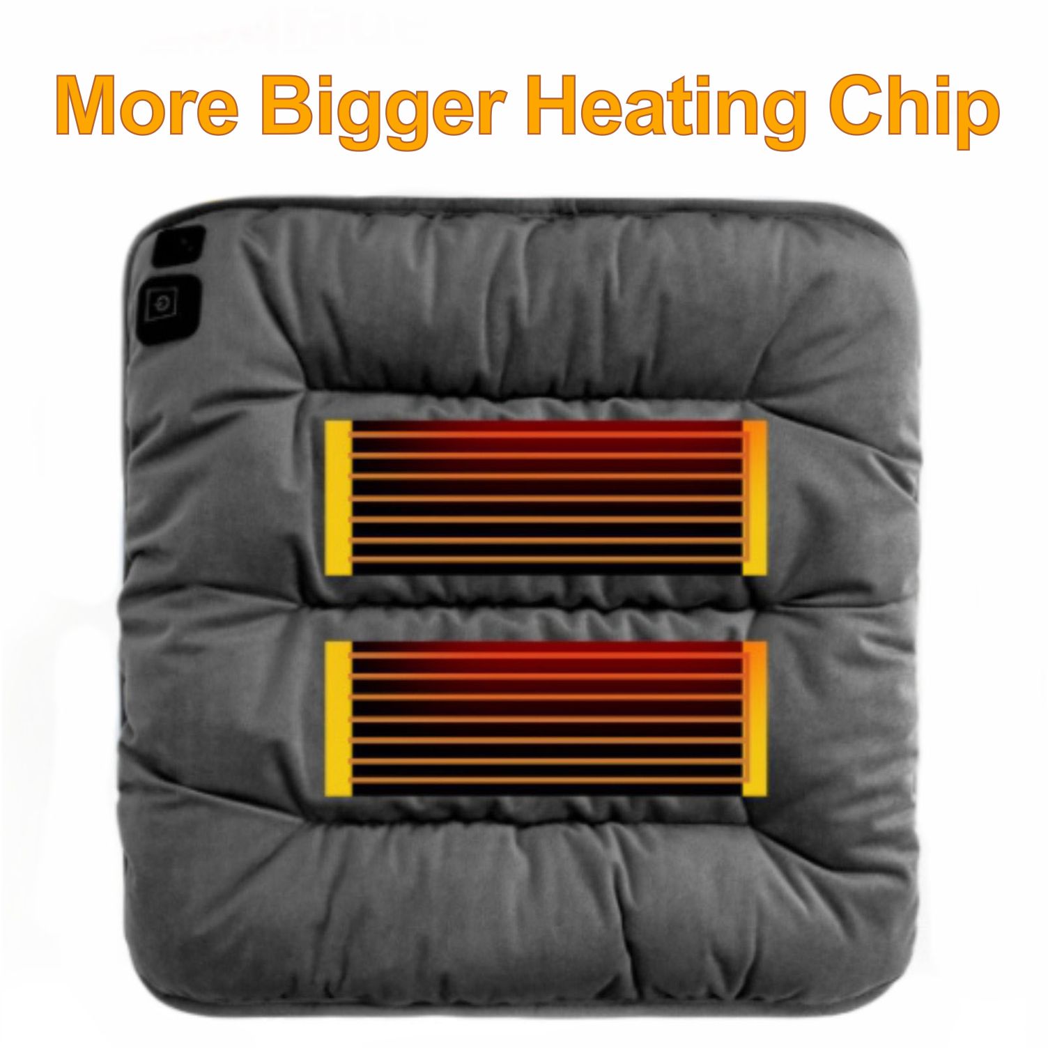 Fit Universally- 18X18 inch Size 2 inch Thick Cushion. The heated seat cushion nicely fits most standard types of seats and chairs, designed with non-slip rubbers on the bottom keep it in place perfectly. Can be placed on dining desk chairs, sofas, office chairs, gaming chairs, wheelchairs and rocking chairs. The seat cushion weighs only 280g and is very portable can be rolled up, making transportation easy, so you can carry the heating pad with you at work, traveling or camping.