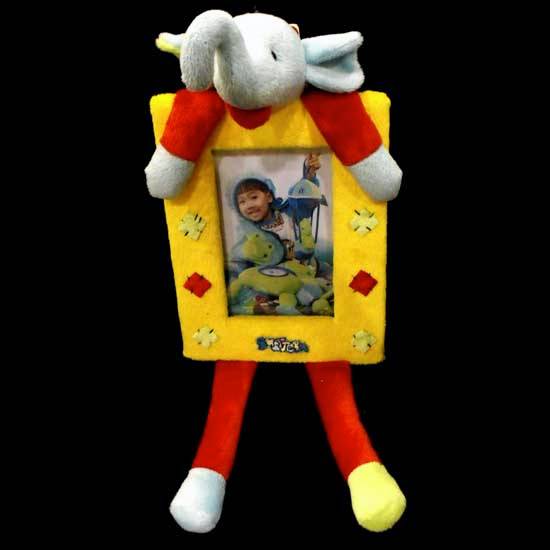 This photo frame is covered with soft plush. It has a design of an elephant. The photo frame is designed to embellish your child's room. It is the perfect choice to display the precious memory of your beloved child.