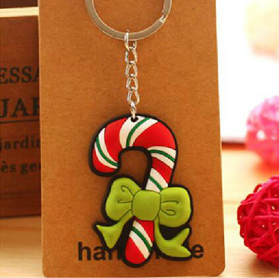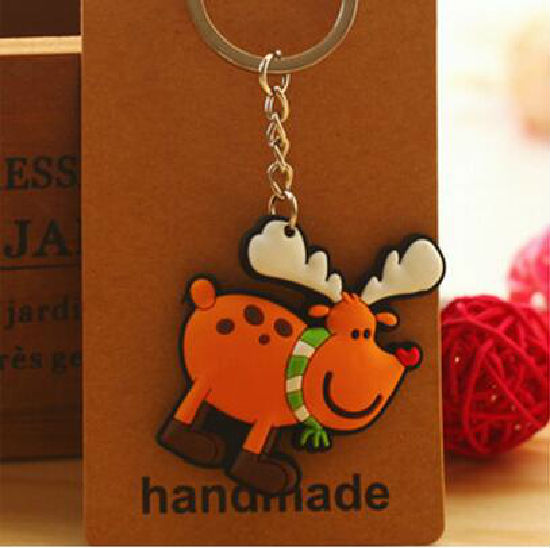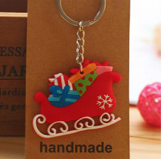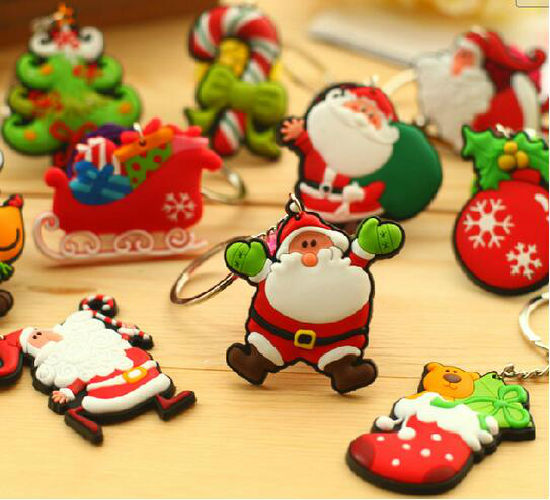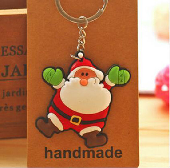 soft PVC Santa claus keychain displayed is made of soft PVC material