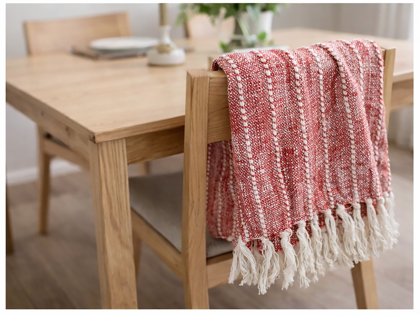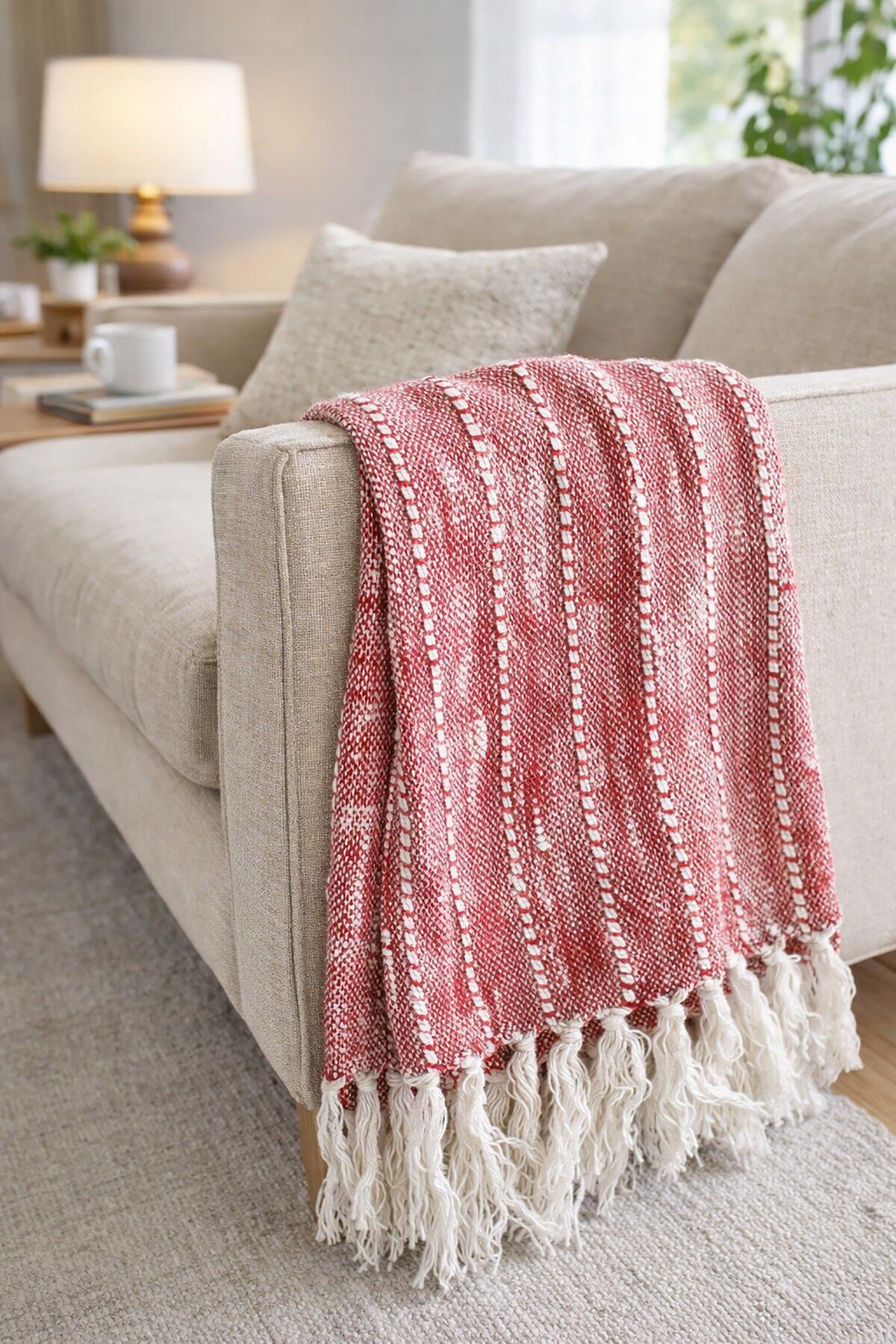 Crafted from a balanced blend of cotton and acrylic, this throw blanket combines the natural breathability of cotton with the luxurious softness of cashmere-like acrylic. The result is a fabric that feels smooth, lightweight, and cozy, offering both comfort and durability.