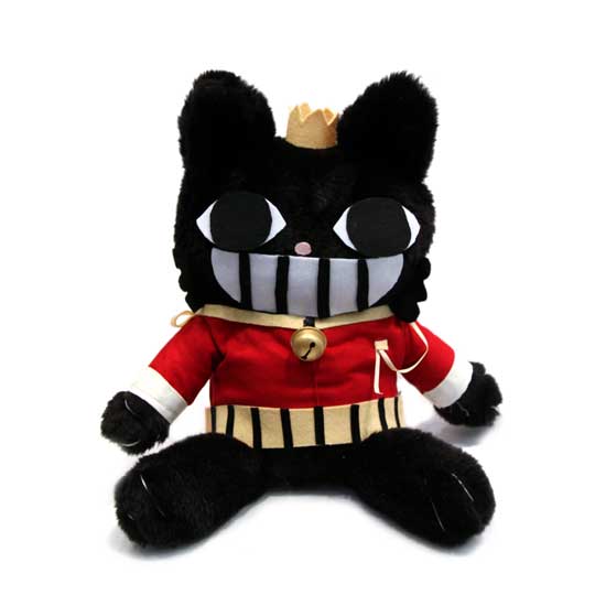 This soft toy is an original character featuring a black cat-like look. It comes with a crown and a royal guard costume with a bell for a cool touch. This appealing soft toy makes a great gift for friends.