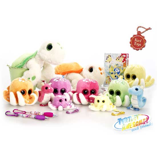 This is a range of six vibrant colored turtles with beautiful hibiscus embroidery detail. The wide range includes octopus, seahorses, clown fish, dolphins as well as mermaids, which all provide bold colors to enliven any shop merchandising. This soft turtle toy is an adorable gift for your beloved kids to play with.