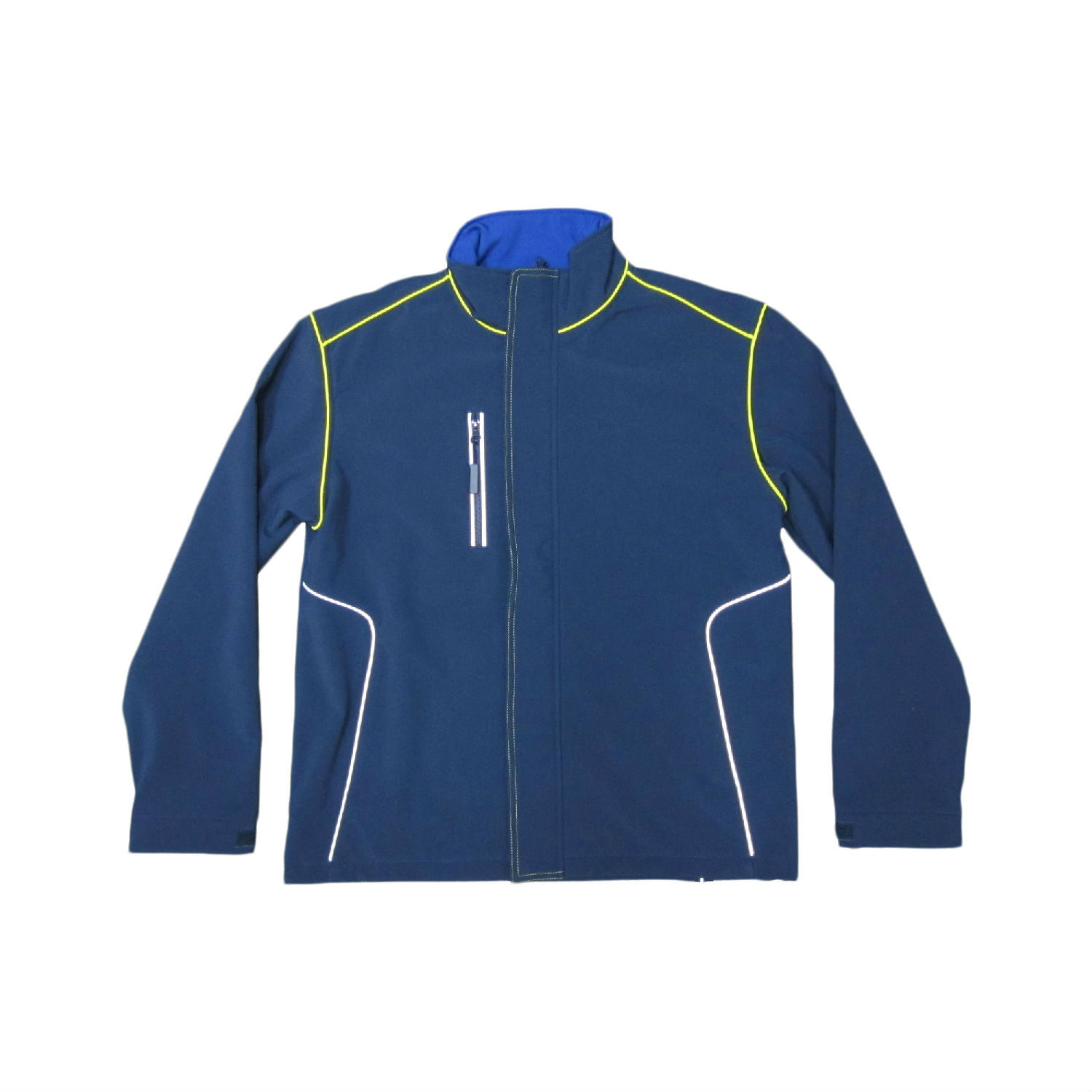 This soft shell jacket is made of bonded fabric with membrane and is embellished with reflective piping. It features a breathable and water repellent construction and is great for outdoor events. The jacket has a self-fabric storm flap with a standing collar and can keep you warm and comfortable.