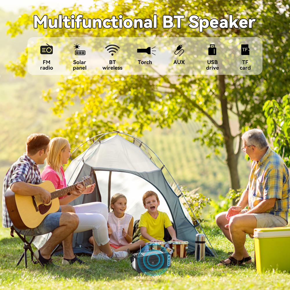 • Function: FM Radio, USB/TF Slot, Bluetooth, Aux in Jack, Torch