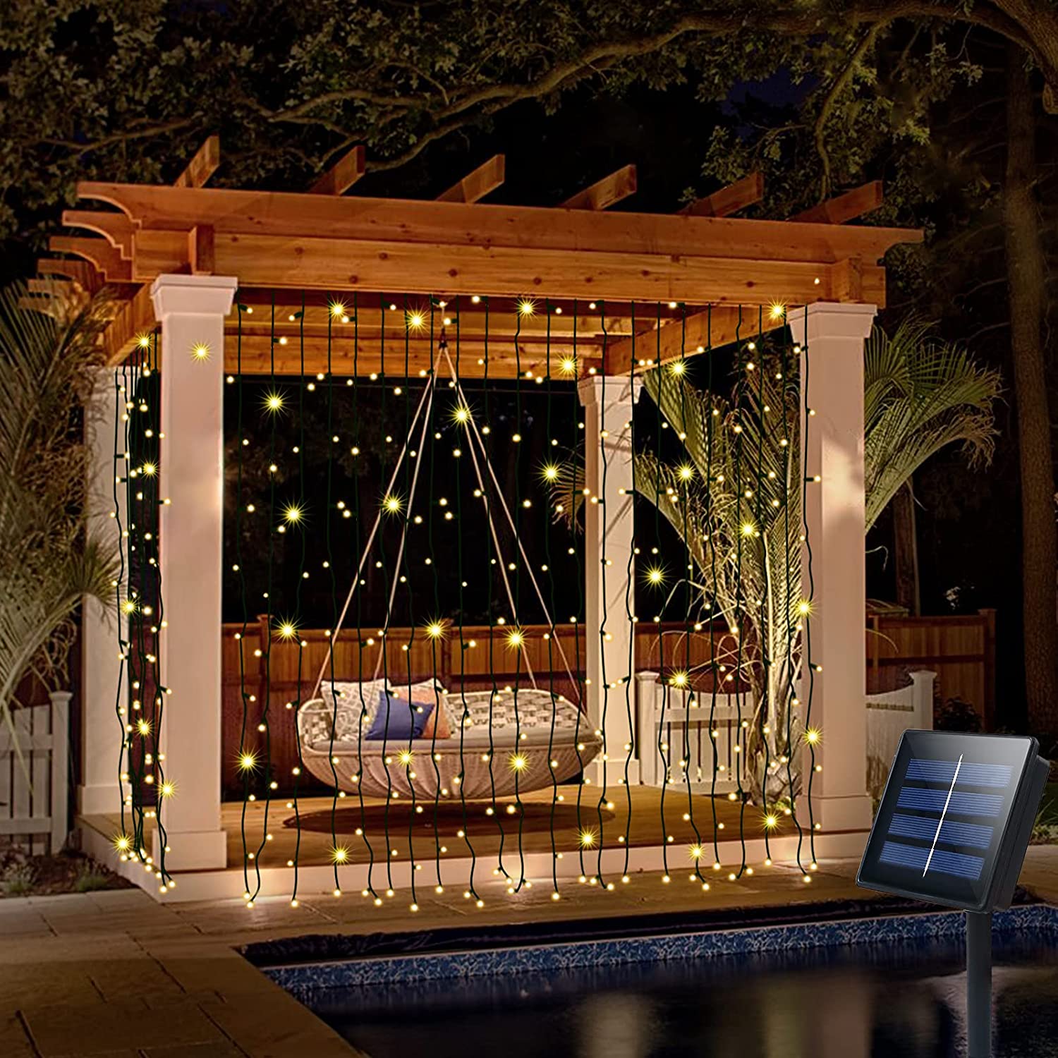 Waterproof Solar Curtain String Lights - Best Choice for Outdoor Garden Wedding Camping Fence Decoration - Energy Saving,Money Saving,Environmental Protection
