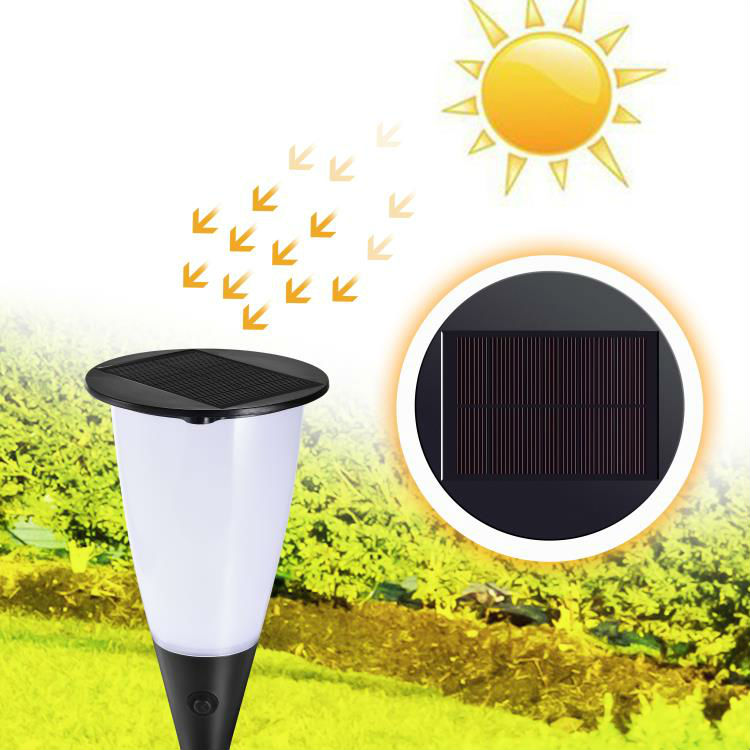 Top-mounted solar panel with daylight sensor, auto solar power charging, powered by built-in Li-ion rechargeable battery, no wiring required, no electric needed.