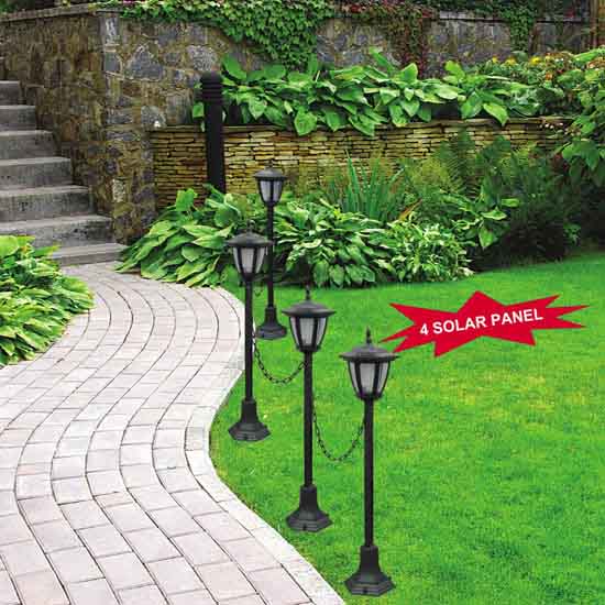 These garden lights are designed in retro and decent looks to fit your garden or lawn. They store and use solar power to generate lights. The sturdy bodies are made weatherproof to withstand long-term use.