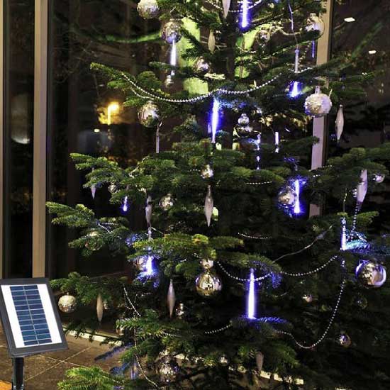 The meteor shower light comes in pure white color. It is widely used in gardens, hotels, trees, homes, streets, parks for decorative purpose. The light is charged by the solar panel automatically at the daytime.