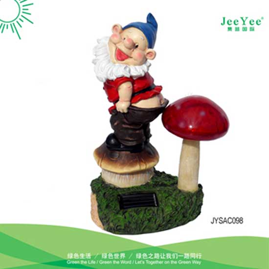 This is a solar light that comes with a colorful dwarf figure. In a mushroom shape, this light is great for decorative use. A small solar panel is built on the base.