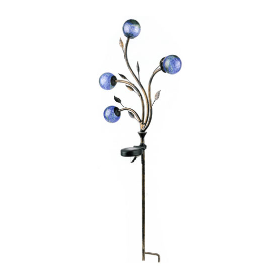 This is an outdoor solar light stand with a fashionable design. It comes with ball and leaf ornaments for an attractive look. This well-designed solar light stand boasts a robust housing for durability.