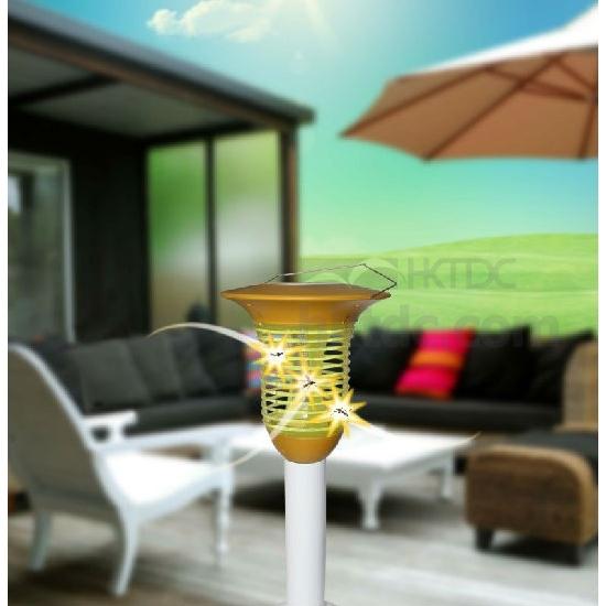 This mosquito killer is recharged by solar panel, utilizing LED and lure to attract the mosquitoes, and eliminating mosquitoes by high voltage network.
