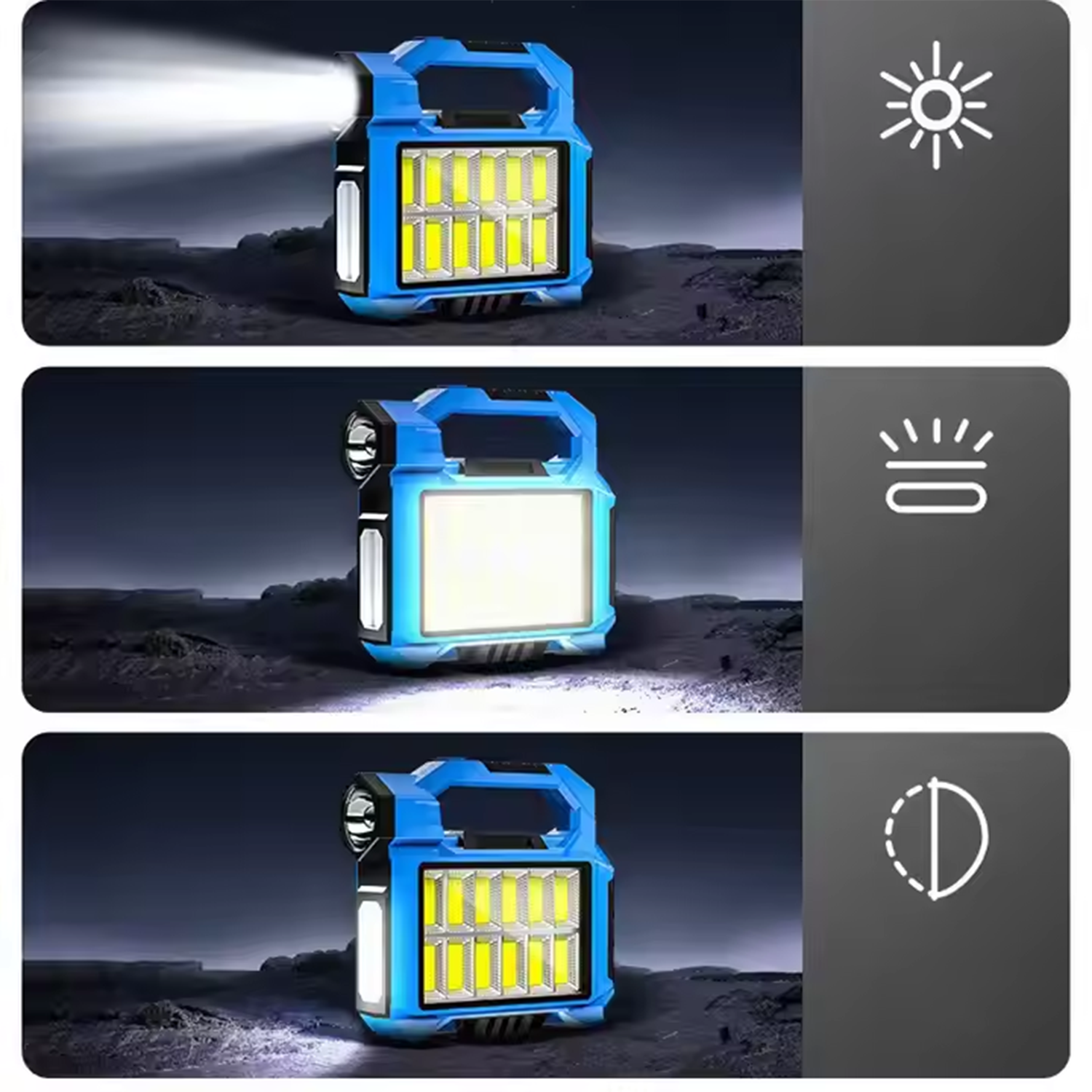 Solar Portable Flashlight Work Light Super Bright Rechargeable Searchlight