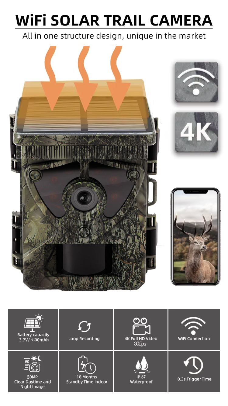 This is a New generation Solar integrated trail camera with WIFI& Bluetooth function.