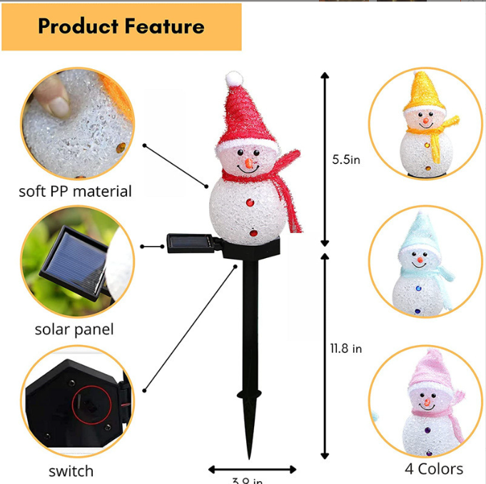 Solar Snowman Christmas Outdoors Lights, Yard Landscape Led Light