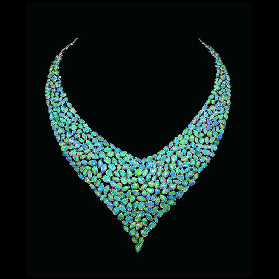 - Materials: 14K and 18K white gold, natural Australian solid crystal opal.