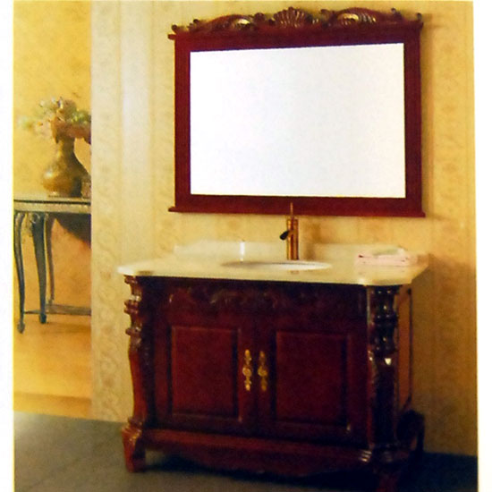 This extravagant bathroom counter adds a touch of luxuriousness to your home. This two-door cabinet is a decorative and practical choice. Bathroom mirrors in matching designs are also available for you to choose from.