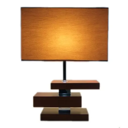 The solid wooden table lamp stands out with a distinctive multi-tiered design. It is fitted with a neat and trim lampshade, delivering comfortable dim light. The metal parts of it are covered with chrome finishes for added appeal and protection.