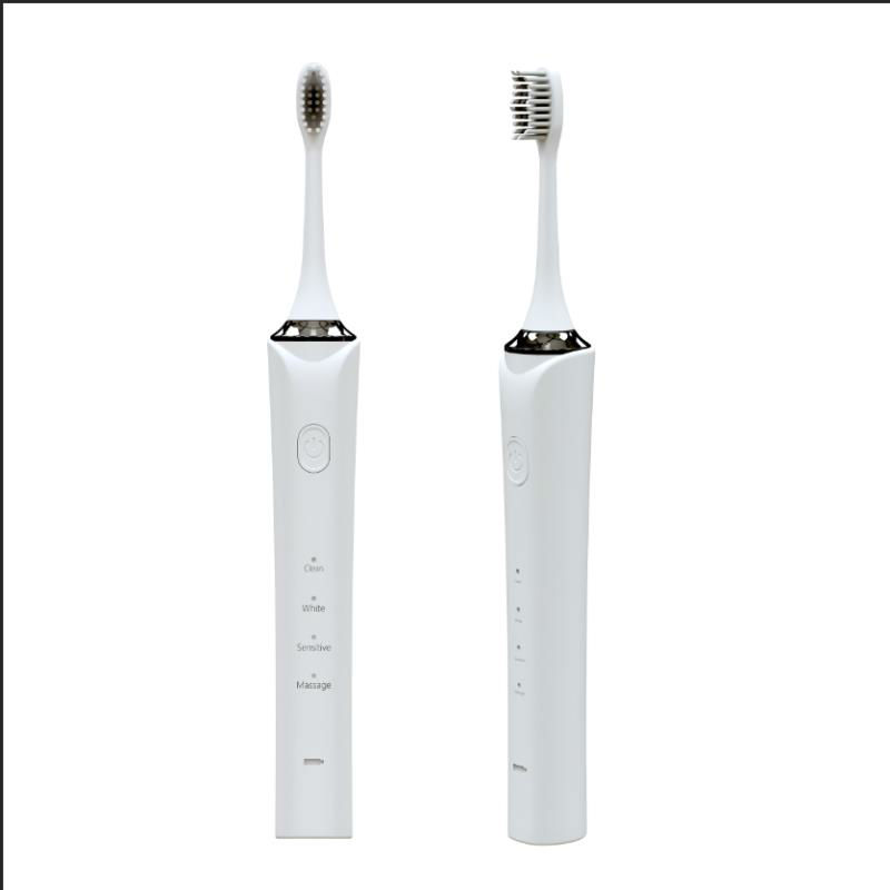 Washable(IPX7) Sonic Electric Toothbrush Waved surface 2 colors Dupont bristles; Uniqe patented magnetic levitation brushless motor, over 38,000 strokes/min, makes 6mm wide swings on the bristle for effective cleaning; 1.5H quick charge, USB direct charging, convient for travel use; 4-brushing mode: Clean, Sensitive, White, Massage, offer varying oral care needs; 2-minutes smart timer auto off with 30s reminder; Memory function set for used brush mode; Red change to green charge indicator, red light flashing for low battery reminder; 600mAh Lithium battery, one full charge for up to 30 days using; Accessaries: 2 brush head w/ protective cap, USB charging cable with Micro connector.