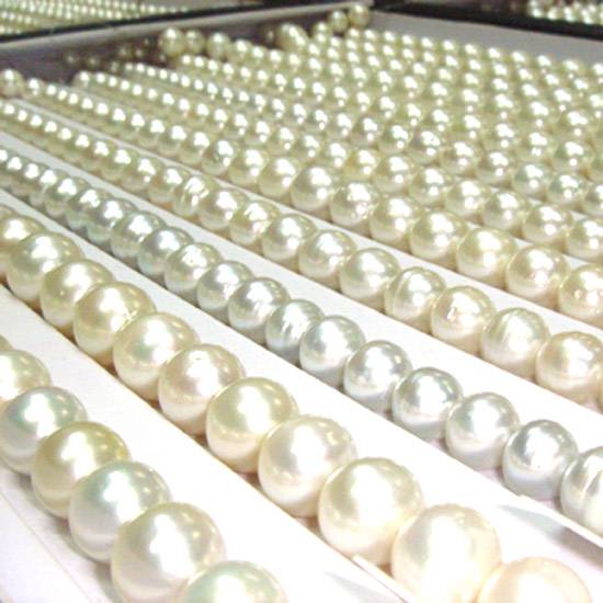 These are South Sea pearls for making jewellery for ladies and women. The salt water white and creamy pearls have different shapes, such as round, semi-round, oval, button and baroque shape, for customers to choose from.