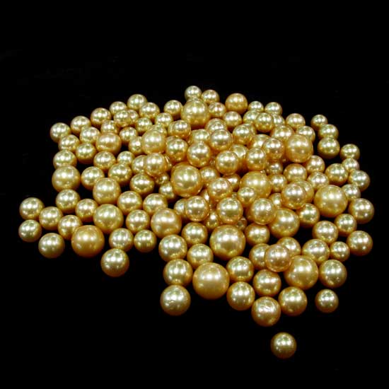 This selection of golden south sea pearls exhibits irresistible charm. The lustrous, golden color fascinates any onlookers. These flawless pearls are an extravagant choice for your jewelry design.