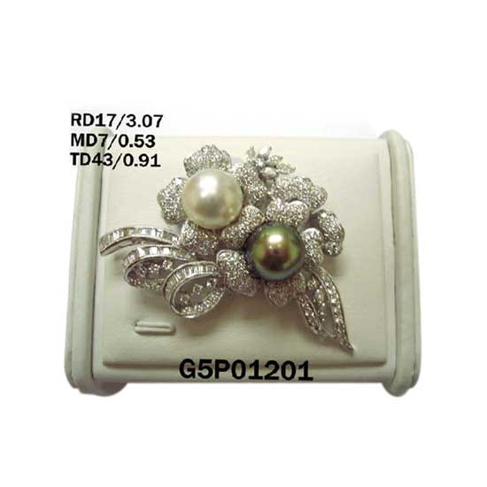 This well-designed brooch is fitted with two south sea pearls colored in black and white. The attractive pearl brooch goes well with your elegant outfits. It is a great addition to your jewelry collection.