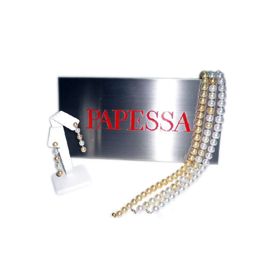 Displayed is a South Sea pearl jewelry set ideal for ladies. Each piece adopts glossy round pearls in golden and white hues for an alluring touch. This fancy South Sea pearl jewelry set is great for grand occasions.