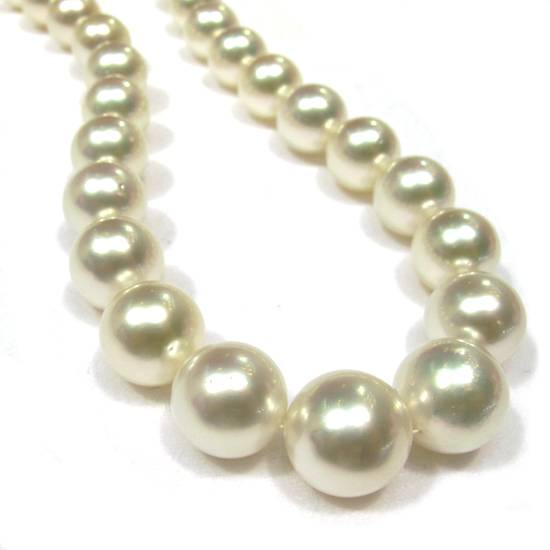 The featured jewellery is a South Sea pearl necklace threaded with round silvery white pearls in different sizes. A simple yet elegant and refined style is created by the smooth and lustrous pearls, which every lady and woman will definitely fall in love with.