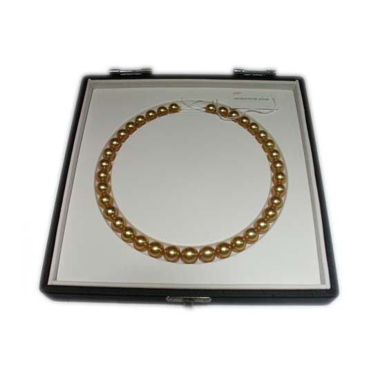 This high-quality South Sea pearl necklace comes in minimum polishing. The perfectly round-shaped bead is elegant and attractive. This golden pearl necklace is suitable for making earrings, necklaces and so on.