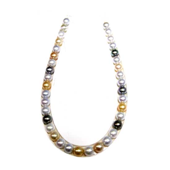Presented is a gorgeous necklace set with natural South Sea pearls. The design features a unique combination of colors to exhibit an elegant appearance. Every pearl on this necklace exudes breathtaking shine to please ladies’ eyes.