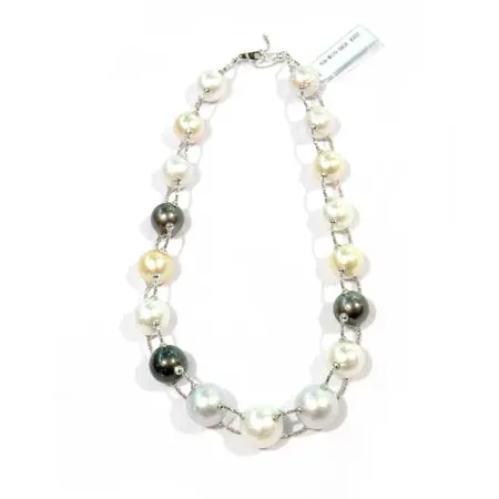 Displayed here is a handmade necklace with South Sea pearls in fancy colors. It is characterized by the 18K white gold casting. Add this South Sea pearl necklace to your jewelry collection.