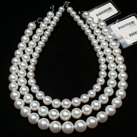 This pictured white pearl necklace is arranged with carefully selected South Sea pearls. These South Sea pearls are masterfully polished for a brilliant shine. This beautiful South Sea pearl necklace complements your dainty outfits nicely.