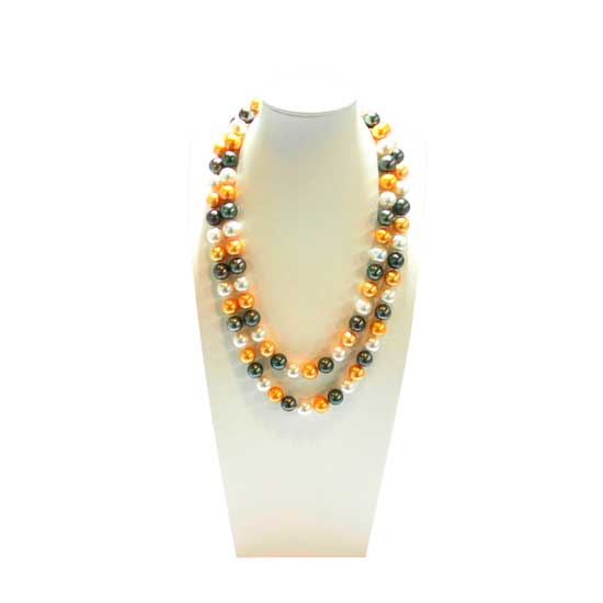 This highlighted pearl necklace is of prestigious quality. Well accented with round, polished 13mm gold and white South Sea pearls, and Tahiti pearls, this two-row pearl necklace presents a glamorous aura. This elegant pearl necklace look sophisticated on every lady.