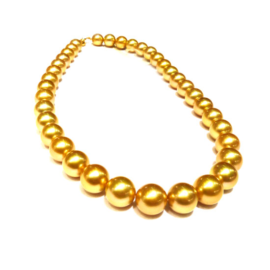 This is a pearl necklace with a charming golden hue. It is finely strung with multiple selected pearls and each piece comes in a ball shape. Add a touch of elegance and charm to your look with its dainty necklace.