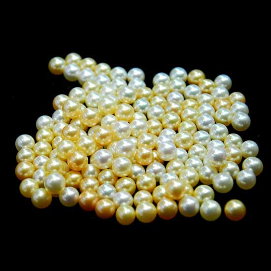 Showcased is a collection of South Sea pearls boasting a precious golden color. The pearls come in a perfectly round shape, boasting breathtaking beauty with its natural luster. These pearls go well with various designs of jewelry and make them extra attractive.