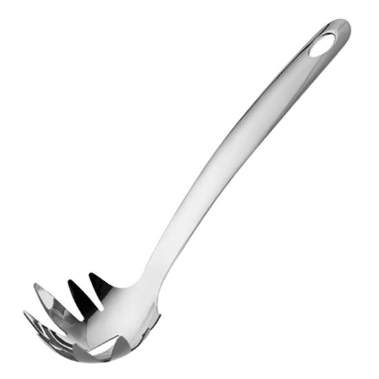 The spaghetti server is made of stainless steel. Spaghetti and linguini can be easily doled out. It is heat resistant and will not scratch non-stick cookware.