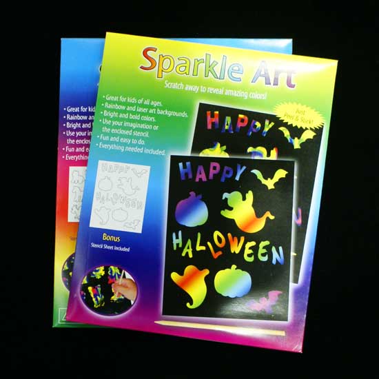 Featured here is a sparkle art coloring book in a Halloween theme. The enclosed stencil of this coloring set allows kids to use their imagination to create their very own Halloween painting decoration. This sparkle art coloring book is a great gift item to inspire the art talent of young children.