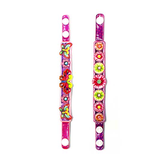 Presented is a sparkling bracelet that is well decorated with butterflies or flowers for a more adorable look. The colorful PVC material achieves the perfect balance of durability and sophistication. This ornamental sparkling bracelet is a lovely accessory for young ladies.