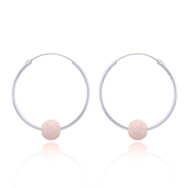 Sparkling Rose Gold Ball Silver Hoop Earrings