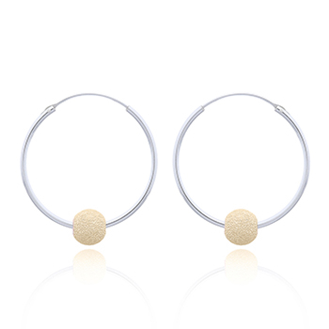 Sparkling Yellow Gold Ball Silver Hoop Earrings
