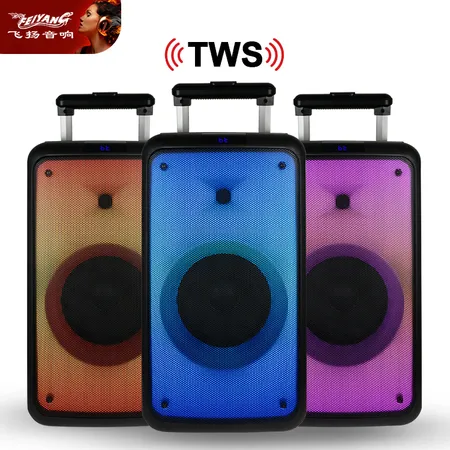 Bluetooth/USB/TF/FM /REC/remote control/12V 4.5ah lead-acid battery /AUX Input /two mic input jack/one guitar input jack/ Mic priority function/changeable flame light on front/RMS:50W